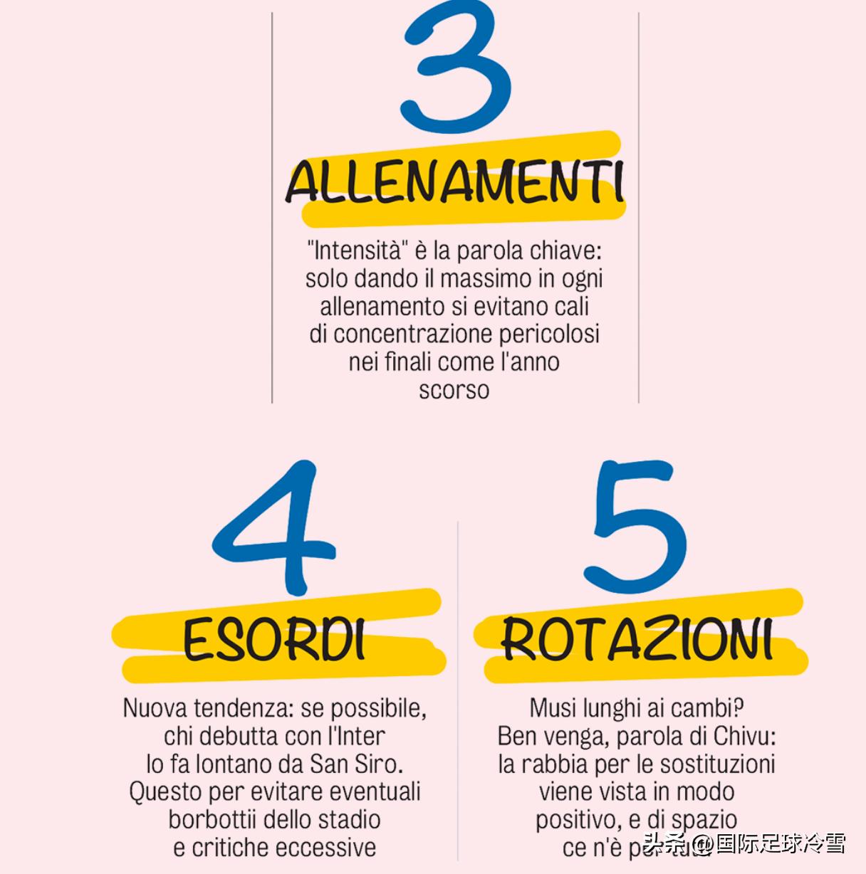 《米兰体育报》以“齐沃的五点变化”为题,指出:一些人因为齐沃没有颠覆小因扎吉的352体系,就认为齐沃只会坐享遗产,但实际上,他的五点做法与小因扎吉完全不同,展示出“严谨治军”的姿态 。